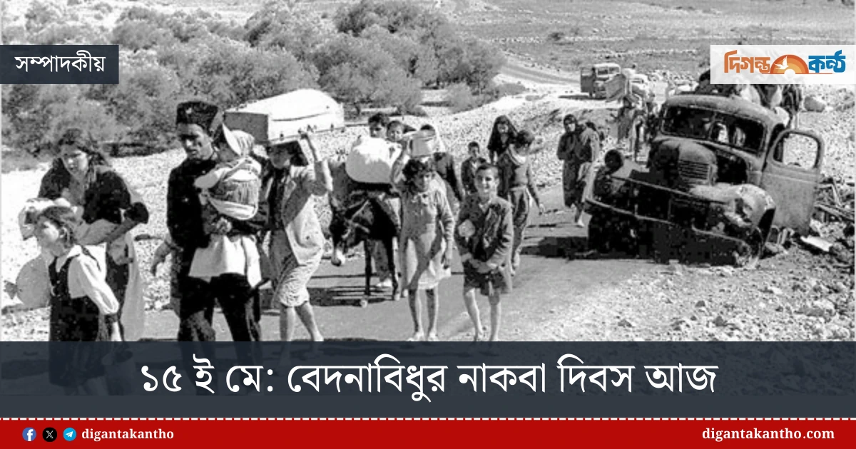 ১৫ মে ফিরে আসে একটি গভীর বেদনাবিধুর স্মৃতি নিয়ে—নাকবা দিবস। ‘নাকবা’ অর্থ ‘বিপর্যয়’, আর ১৯৪৮ সালের এই দিনে ফিলিস্তিনিদের জীবনে যে দুর্বিষহ অধ্যায় শুরু হয়েছিল, তা মানব ইতিহাসের এক কলঙ্কগাথা। ইহুদি রাষ্ট্র ইসরায়েল প্রতিষ্ঠার ঘোষণা দেওয়ার পরপরই ফিলিস্তিনিদের উপর নেমে আসে গণচ্যুতি, নিপীড়ন ও দখলের এক দীর্ঘ অধ্যায়। প্রায় আট লাখ ফিলিস্তিনিকে তাদের জন্মভূমি থেকে জোরপূর্বক উৎখাত করা হয়। ধ্বংস করা হয় শত শত গ্রাম, মুছে ফেলা হয় ফিলিস্তিনিদের সাংস্কৃতিক ও সামাজিক অস্তিত্বের বহু নিদর্শন।